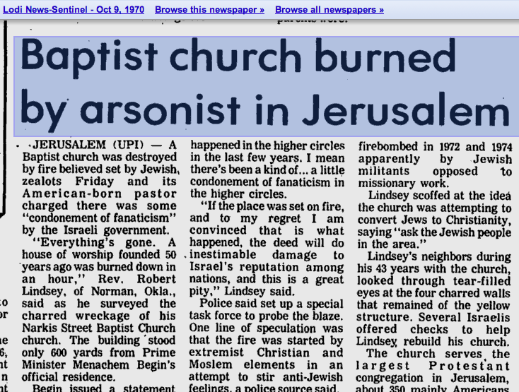 Many times signs pointing to Christian sites in Israel have the crosses scratched off. In the past leaders have been vocal in condemning this activity. For instance in 1982 Menachem Begin declared the attack on Narkis street “a malicious crime,” and then-interior secretary Yosef Burg ordered a special police investigation.
