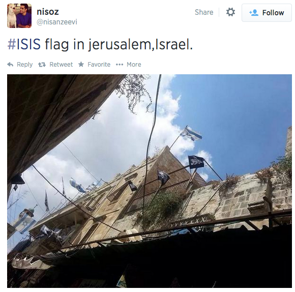 An article at Times of Israel claims to have spotted the ISIS flag in Jerusalem.
