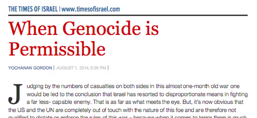 1) As Israel was in the midst of fighting the recent Gaza war, some international voices began accusing it of “genocide.” This is the typical hyperbole that always comes out that ignores all logic. But then, as if timed to give these accusations proof, came along Yocahnon Gordon, son of Five Towns Jewish Times founder, and blogger at the ‘Times of Israel’ website.