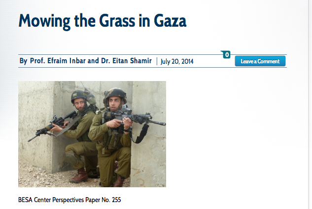 Efraim Inbar is a well known scholar, but the term “mowing the grass” doesn’t go over well. It seems to imply callously killing some people and destroying infrastructure every few years. It speaks to an Israel that is heartless, not an Israel confronted by terrorists. Similarly Bar-Ilan University Professor Mordechai Kedar’s strange comments about rape as a deterrent were quickly caught upon to show the “true” face of Israel.