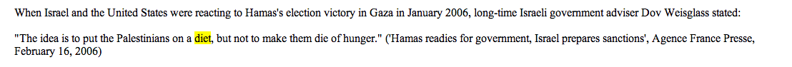 Over the years many people ostensibly supporting Israel or providing “policy analysis” have come up with a litany of bizarro statements. Consider when Dov Weissglass was reported to have said Gaza should be “put on a diet.”