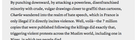 There controversy over the PEN boycott mirrors the comments by cartoonist Garry Trudeau against Charlie Hebdo. Garry Trudeau claimed “By punching downward, by attacking a powerless, disenfranchised minority with crude, […]
