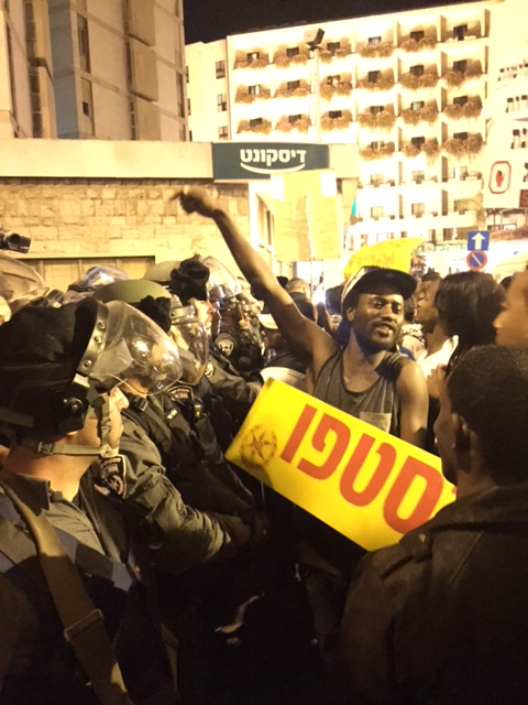 But this wasn’t Ferguson or Baltimore. No one looted. No one burned down stores and stole from them. In the opposite, Ethiopian protesters could be seen chatting on the site sometimes with the police. It seemed that the Border Police had purposely not included Ethiopian members in the units deployed, because usually you see a lot of Ethiopians in that unit. Nevertheless some activists found friends they knew from their army service in those opposing them.