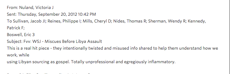 This says a lot about the US administration’s mentality. It is more afraid of one oped, than of anything else. When one reads the Hilary emails released by the Freedom of Information act, one finds a similar obsession with critique of Benghazi in the WSJ. What is it about a little critique that ruffles feathers?