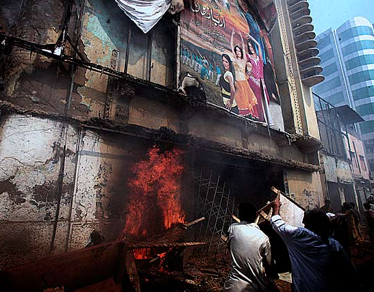 Pakistani mobs burn movie theaters in 2012 to “protest” an “anti-Islam” home movie made in the US; because in Pakistan when they are “offended” any action can be taken, including murder, and it is acceptable