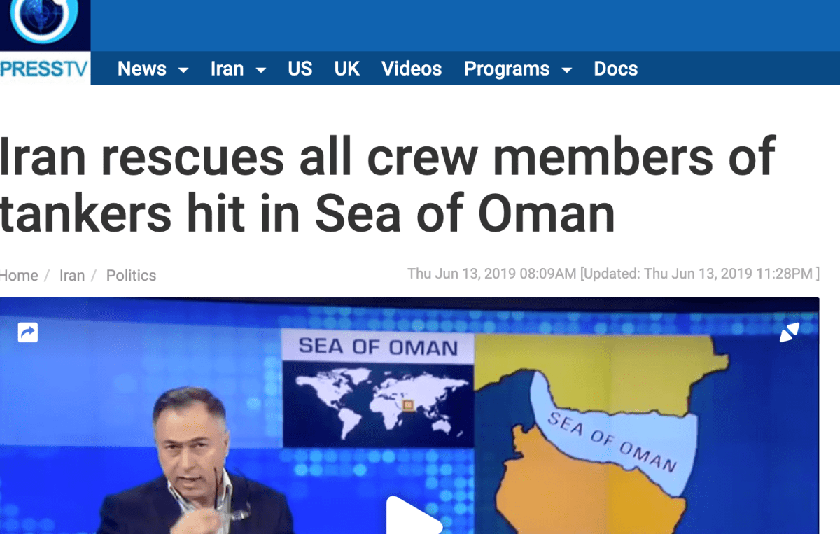 Screen Shot 2019-06-14 at 11.25.00 PM Published June 14, 2019 at 1538 × 978 in How did Iran plan tanker attack? Links and sources show Iranian media may have given us hints Next →