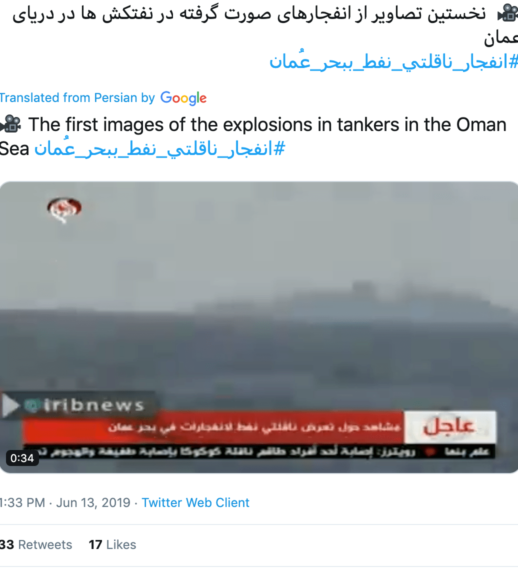 Screen Shot 2019-06-14 at 11.35.06 PM Published June 14, 2019 at 1036 × 1152 in How did Iran plan tanker attack? Links and sources show Iranian media may have given us hints ← Previous Next →