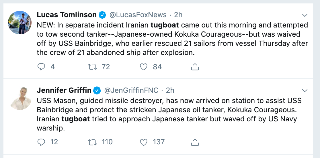 Screen Shot 2019-06-15 at 12.04.45 AM Published June 14, 2019 at 1116 × 552 in How did Iran plan tanker attack? Links and sources show Iranian media may have given us hints ← Previous Next →