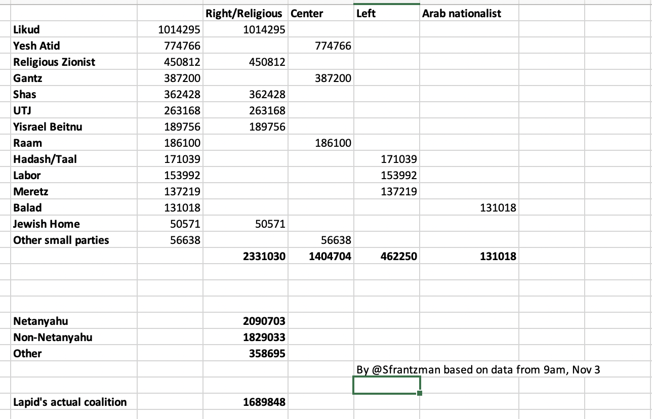 Anyone selling the story today that “the Right and Left got the same number of votes, but somehow Netanyahu won” or “wasted voted on Balad and Meretz caused this”…are not being accurate…